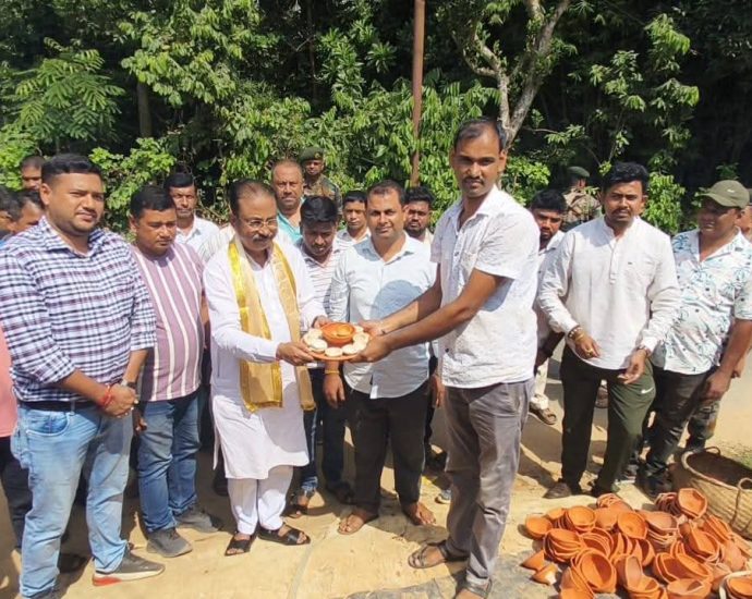 মৃৎশিল্পীর কাছ থেকে মাটির প্রদীপ ক্রয় করেন সাংসদ রাজীব