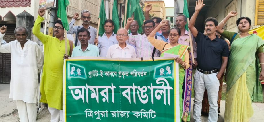 আগরতলা, ৯ নভেম্বরঃ এস আই আর ও এন আর সি–র প্রতিবাদে রবিবার রাজধানীর ‘আমরা বাঙালী’ রাজ্য কার্যালয়ের সামনে এক বিক্ষোভ কর্মসূচির আয়োজন করা হয়। দলের পক্ষ থেকে অভিযোগ তোলা হয়েছে, কেন্দ্র সরকার বাঙালিদের রাষ্ট্রহীন করার চক্রান্তে মেতে উঠেছে।