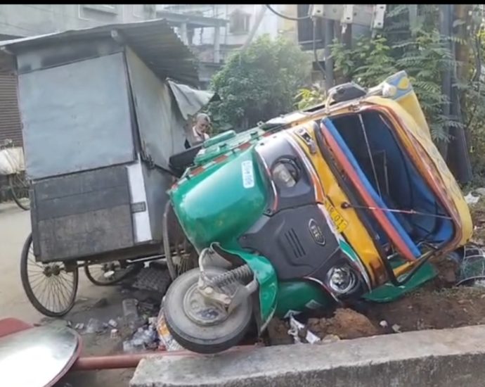 সাত সকালে চায়ের দোকানে ধাক্কা মেরে উল্টে গেল অটো, অল্পেতে রক্ষা