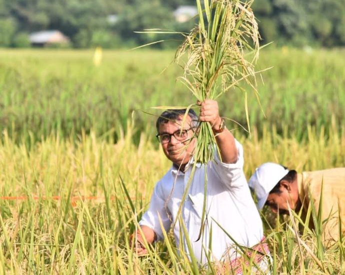 লঙ্কামুরায় কৃষকদের সঙ্গে ধান কাটায় অংশ নিলেন কৃষিমন্ত্রী