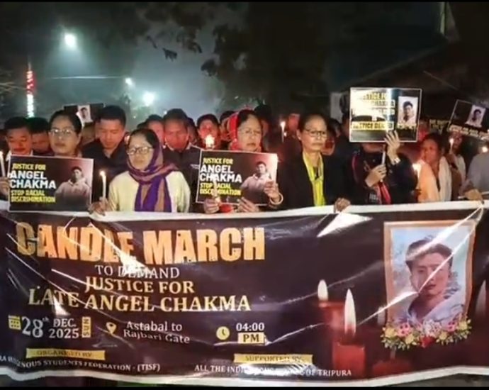 দেরাদুনে আদিবাসী ছাত্রের মৃত্যুর প্রতিবাদে আগরতলায় মোমবাতি মিছিল