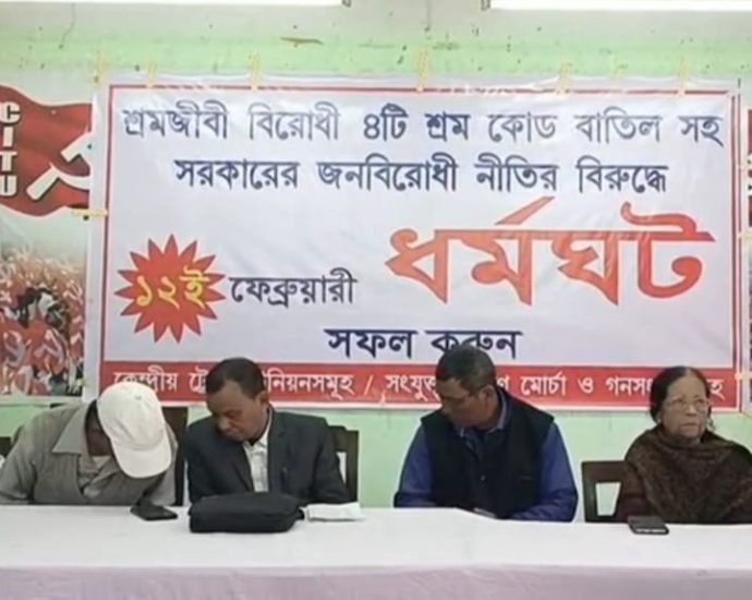 জিরানিয়া, ২৫ জানুয়ারি: শ্রমজীবী বিরোধী বলে দাবি করা চারটি শ্রম কোড বাতিলসহ কেন্দ্র ও রাজ্য সরকারের জনবিরোধী নীতির প্রতিবাদে ১২