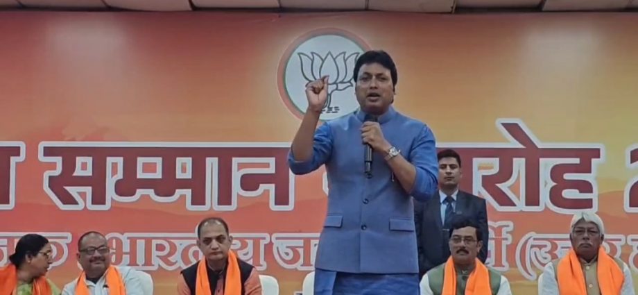 আগরতলা, ২৫ জানুয়ারি:পশ্চিমবঙ্গের শাসক দল তৃণমূল কংগ্রেসের বিরুদ্ধে তীব্র ভাষায় আক্রমণ শানালেন ত্রিপুরার প্রাক্তন মুখ্যমন্ত্রী ও বর্তমান লোকসভা সাংসদ বিপ্লব কুমার দেব। ভারতীয় জনতা পার্টি উত্তর হাওড়া আয়োজিত ‘অটল সম্মান সমারোহ ২০২৬’-এ অংশগ্রহণ করে তিনি অভিযোগ করেন, প্রেত আত্মার ভোটের জোরেই পশ্চিমবঙ্গে সরকার গঠন করে ক্ষমতায় টিকে রয়েছে তৃণমূল কংগ্রেস।