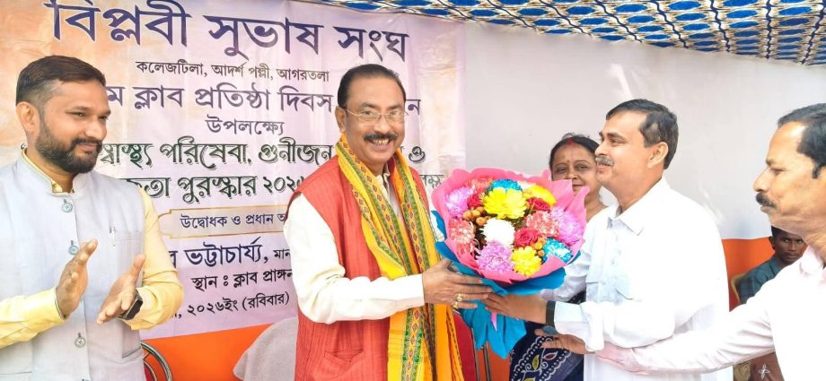আগরতলা, ৮ ফেব্রুয়ারী : বনমালীপুর বিধানসভার অন্তর্গত কলেজটিলা ও আদর্শপল্লী এলাকায় অবস্থিত বিপ্লবী সুভাষ সংঘের ৭২তম প্রতিষ্ঠা দিবস উপলক্ষ্যে এক মেগা স্বাস্থ্য শিবিরের আয়োজন করা হয়েছে। ওই অনুষ্ঠানে প্রধান অতিথি হিসেবে উপস্থিত ছিলেন বিজেপি প্রদেশ সভাপতি তথা সাংসদ রাজীব ভট্টাচার্যী।