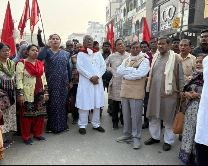 ধর্মঘটের সমর্থনে শহরে বামফ্রন্টের বিক্ষোভ মিছিল, ময়দানে মানিক সরকার ও বিরোধী দলনেতা