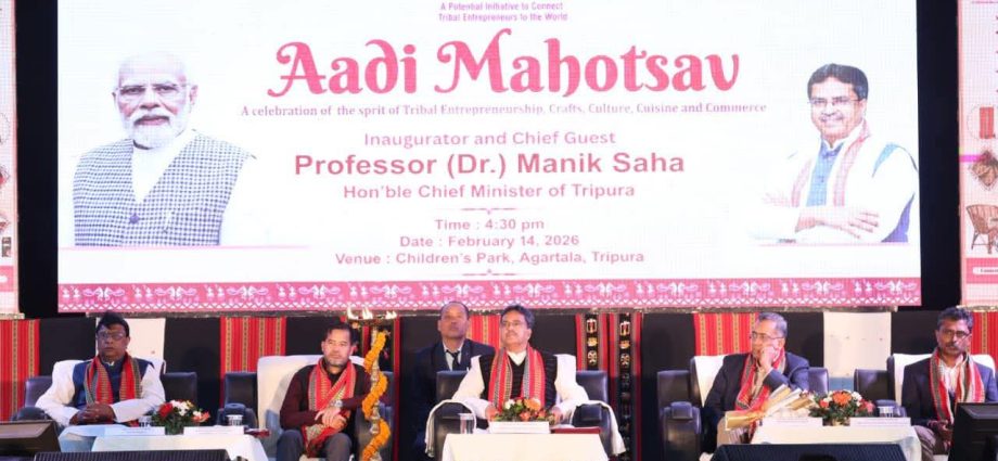 নিজস্ব প্রতিনিধি, আগরতলা, ১৪ ফেব্রুয়ারি: আজ থেকে আগরতলার শিশু উদ্যানে শুরু হয়েছে আদি মহোৎসব। আজ সন্ধ্যায় ৮ দিনব্যাপী অনুষ্ঠানের উদ্বোধন করেন মুখ্যমন্ত্রী প্রফেসর (ডা) মানিক সাহা। উৎসব চলবে আগামী ২১ ফেব্রুয়ারি পর্যন্ত। কেন্দ্রীয় জনজাতি বিষয়ক মন্ত্রকের অধীনে ট্রাইপেড (ট্রাইবেল কো-অপারেটিভ মার্কেটিং ডেভেলাপমেন্ট ফেডারেশন অব ইন্ডিয়া লিমিটেড) এবং রাজ্য সরকারের জনজাতি কল্যাণ দপ্তরের সহায়তায় এই উৎসবের আয়োজন করা হয়েছে।