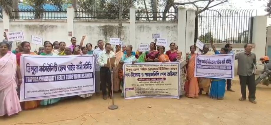 আগরতলা, ২৩ ফেব্রুয়ারি: বিভিন্ন দাবি সামনে রেখে ছাঁটাই হওয়া কমিউনিটি হেলথ গাইড কর্মীরা সোমবার সার্কিট হাউস সংলগ্ন এলাকায় গণধর্নায় সামিল হন। পাশাপাশি এদিন স্বাস্থ্য ও পরিবার কল্যাণ দপ্তরের সচিবের নিকট একটি ডেপুটেশনও পেশ করা হয়েছে বলে জানান আন্দোলনকারীরা।