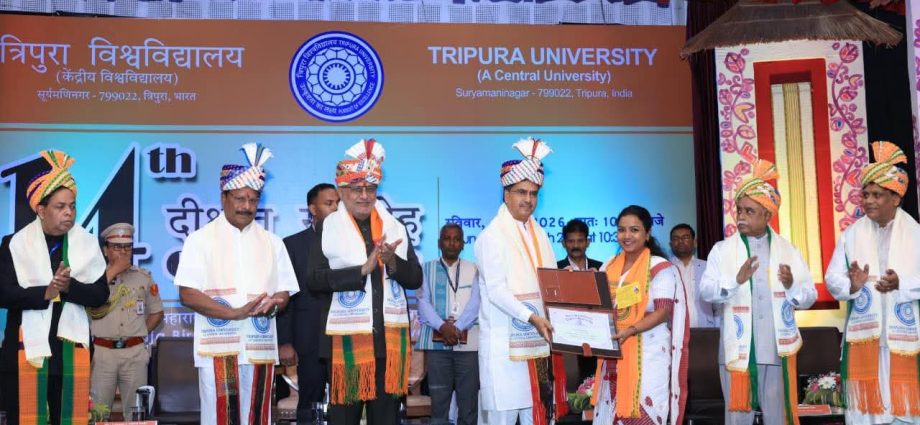 সমাবর্তন অনুষ্ঠানের উদ্বোধন করে উপরাষ্ট্রপতি সি পি রাধাকৃষ্ণাণ বলেন, ছোট রাজ্য হলেও ত্রিপুরার সমৃদ্ধ ঐতিহ্য ও সংস্কৃতি রয়েছে, যা ত্রিপুরার মাহাত্ম। ত্রিপুরাবাসীর ঐতিহ্যগত সংস্কৃতি, আধ্যাত্মিকতা এবং সম্প্রীতির বন্ধন ত্রিপুরাকে মহিমান্বিত করেছে। উপরাষ্ট্রপতি আজ সকালে উদয়পুরে ত্রিপুরাসুন্দরী মন্দির দর্শনের কথা উল্লেখ করে ছবিমুড়া, ডম্বুর জলাশয়, ত্রিপুরাসুন্দরী মন্দিরকে কেন্দ্র করে আধ্যাত্মিক এবং ইকো-ট্যুরিজমের উন্নয়নের কথাও তুলে ধরেন। তিনি বলেন, রাজ্যের সামগ্রীক উন্নয়নে বিভিন্ন প্রকল্প দ্রুত রূপায়ণ করা হচ্ছে। এজন্য তিনি মুখ্যমন্ত্রীকে ধন্যবাদ জানান।