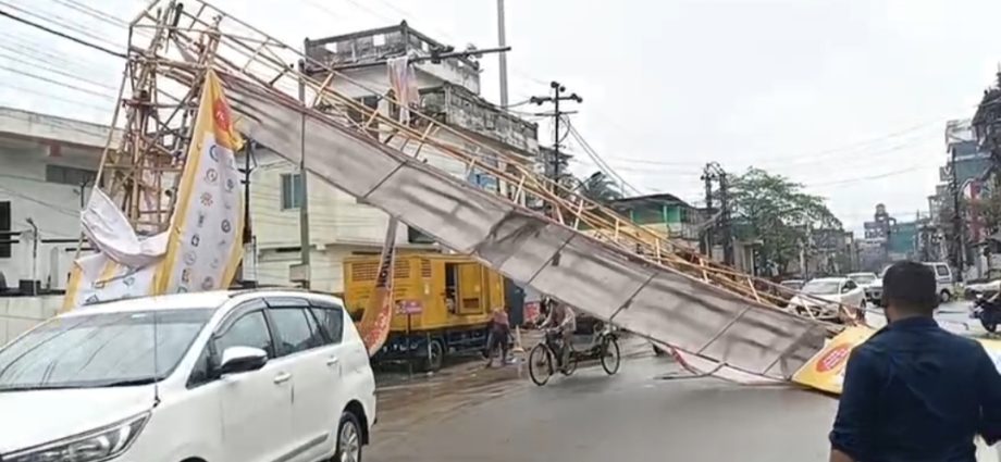 আগরতলা, ১৩ মার্চ : সামান্য দমকা হাওয়াতেই রাজধানীর চিলড্রেন পার্ক সংলগ্ন এলাকায় রাস্তায় লাগানো একটি বাঁশের তোরণ ভেঙে পড়ার ঘটনায় চাঞ্চল্য ছড়িয়েছে। অল্পের জন্য বড় ধরনের দুর্ঘটনা এড়ানো গেছে বলে জানা গেছে।