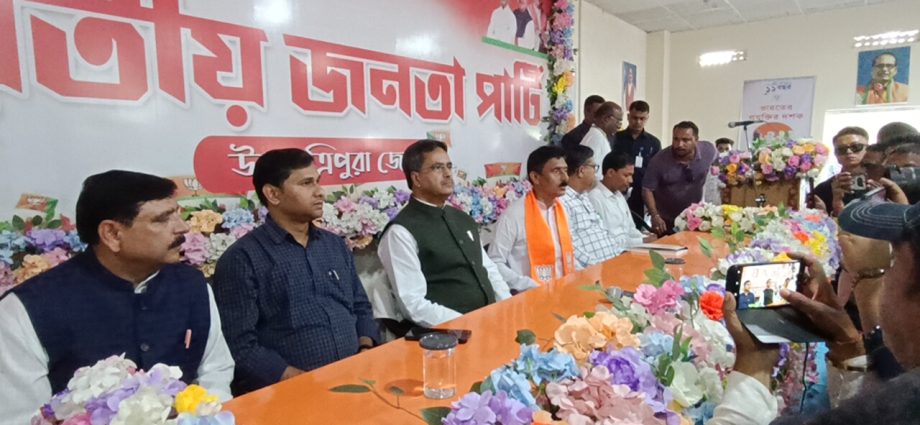 ধর্মনগর, ২২ মার্চ: ত্রিপুরার ৫৬ নং ধর্মনগর বিধানসভা কেন্দ্রের উপনির্বাচনকে সামনে রেখে রবিবার ধর্মনগরে ভারতীয় জনতা পার্টির দলীয় কার্যালয়ে এক গুরুত্বপূর্ণ সাংগঠনিক বৈঠক অনুষ্ঠিত হয়। বৈঠকে উপস্থিত ছিলেন রাজ্যের মুখ্যমন্ত্রী ড. প্রফেসর মানিক সাহা। এছাড়াও মন্ত্রী ও বিধায়কেরা সভায় অংশগ্রহণ করেন।