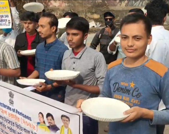 ভাতের থালা হাতে প্রতিবাদে চাকরিপ্রার্থীরা, ফের আইজি প্রিজন অফিস ঘেরাও