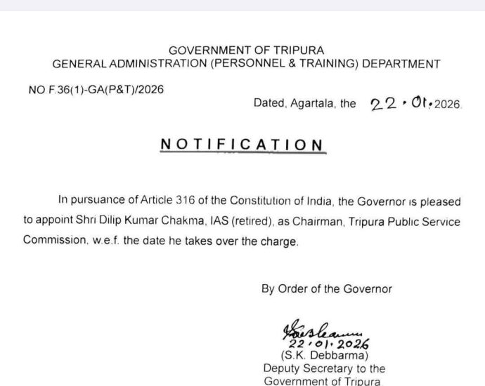 টিপিএসসি- র নতুন চেয়ারম্যান নিযুক্ত দিলীপ কুমার চাকমা