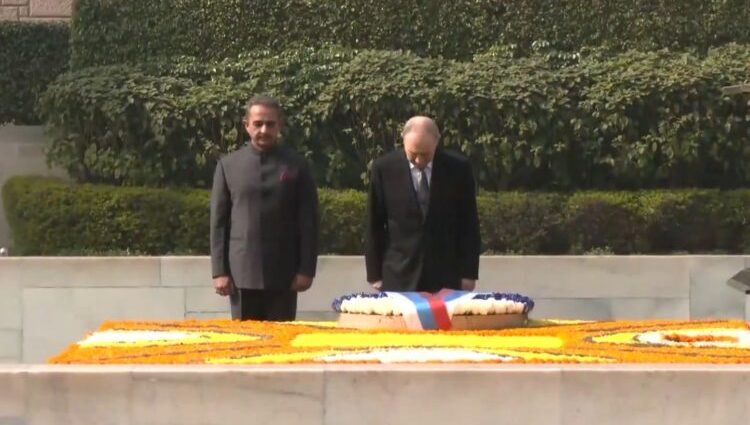 রাশিয়ার প্রেসিডেন্ট ভ্লাদিমির পুতিনের রাজঘাটে মহাত্মা গান্ধীকে শ্রদ্ধার্পণ