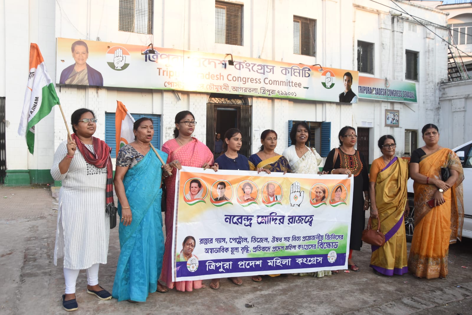 Protest :রান্নার গ্যাসের মূল্যবৃদ্ধির প্রতিবাদে আগতলায় মহিলা কংগ্রেসের
