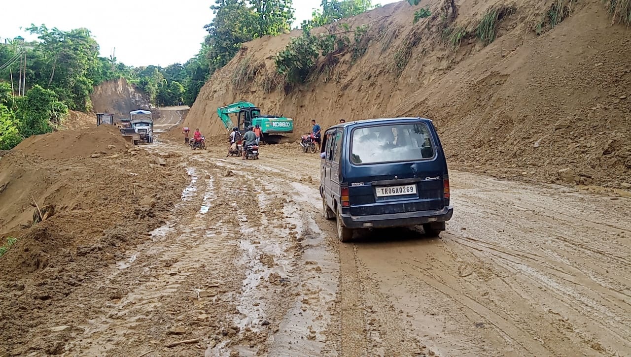 National road repair work slow : জাতীয় সড়ক সংস্কার কাজ চলছে ধীর গতিতে সামান্য বৃষ্টিতেই আঠারমুড়ায় স্তব্ধ গাড়ির চাকা